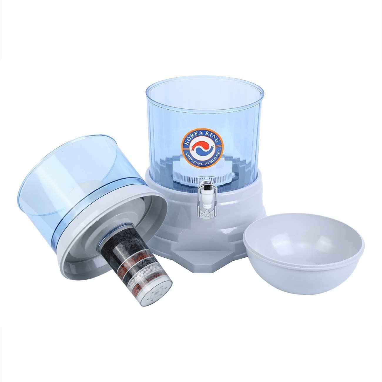 Healthy and fresh drinking water is the foundation of human life. This water activated carbon purifier helps to remove sediment, rust, heavy metals in water, it has power functionality with purification, softening, and sterilization, so you can enjoy healthy and fresh weak alkaline mineral water. The upper and lower tank has 16 L large capacity in total, with faucet for convenient access.