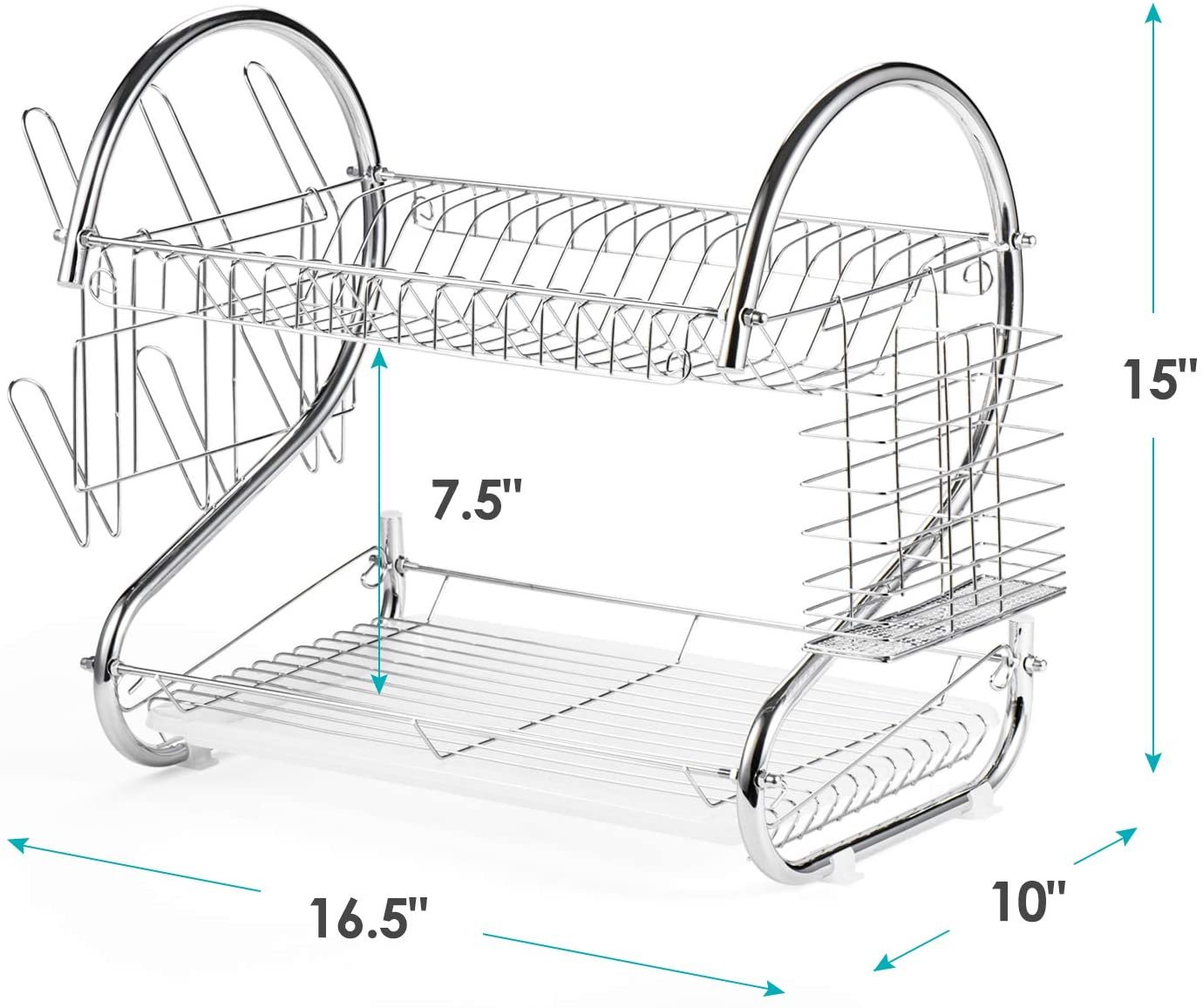 - An elegant 2-tier dish rack: S-shaped double-layer shelf and double drain design – layered from top to bottom, side expansion, reasonable storage of your dishes, cups and a variety of tableware. Not only is it easy to drain, but it also keeps the kitchen clean.
