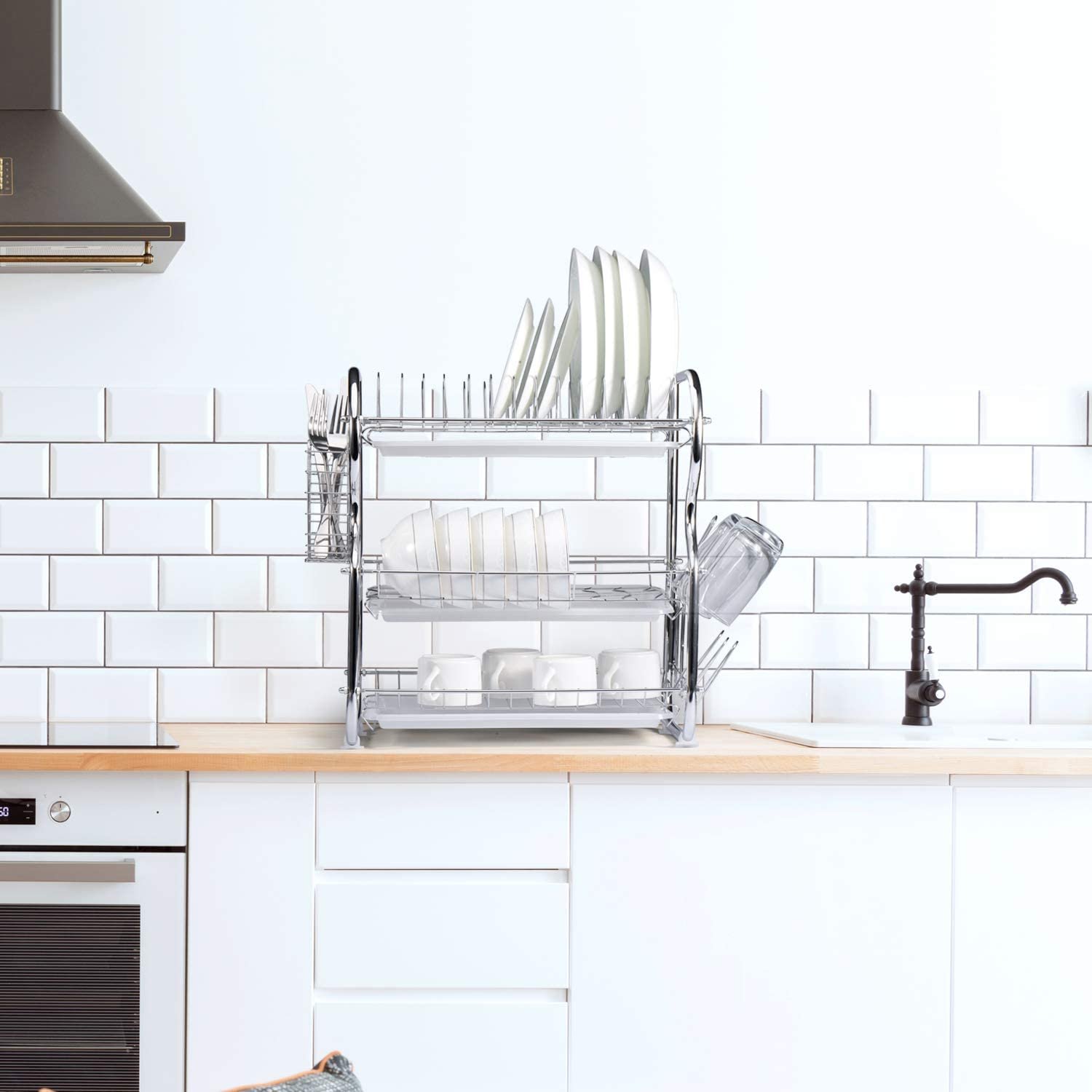 - This 3 Tier Dish Rack offers much space for draining and drying after washing dishes, easy to clean and maintain