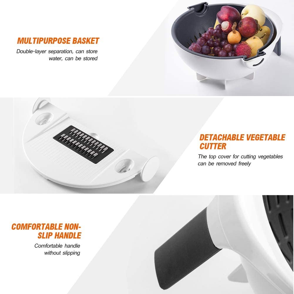 9 in 1 Magic Multifunctional Rotate Vegetable Cutter with Drain Basket