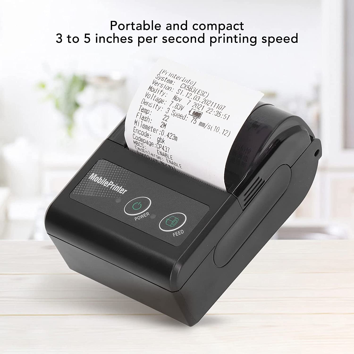 Portable receipt printer is portable and compact and does not take up space, you can print it anytime, anywhere. You can put it in your pocket or carry bag and suspend it on your waist.