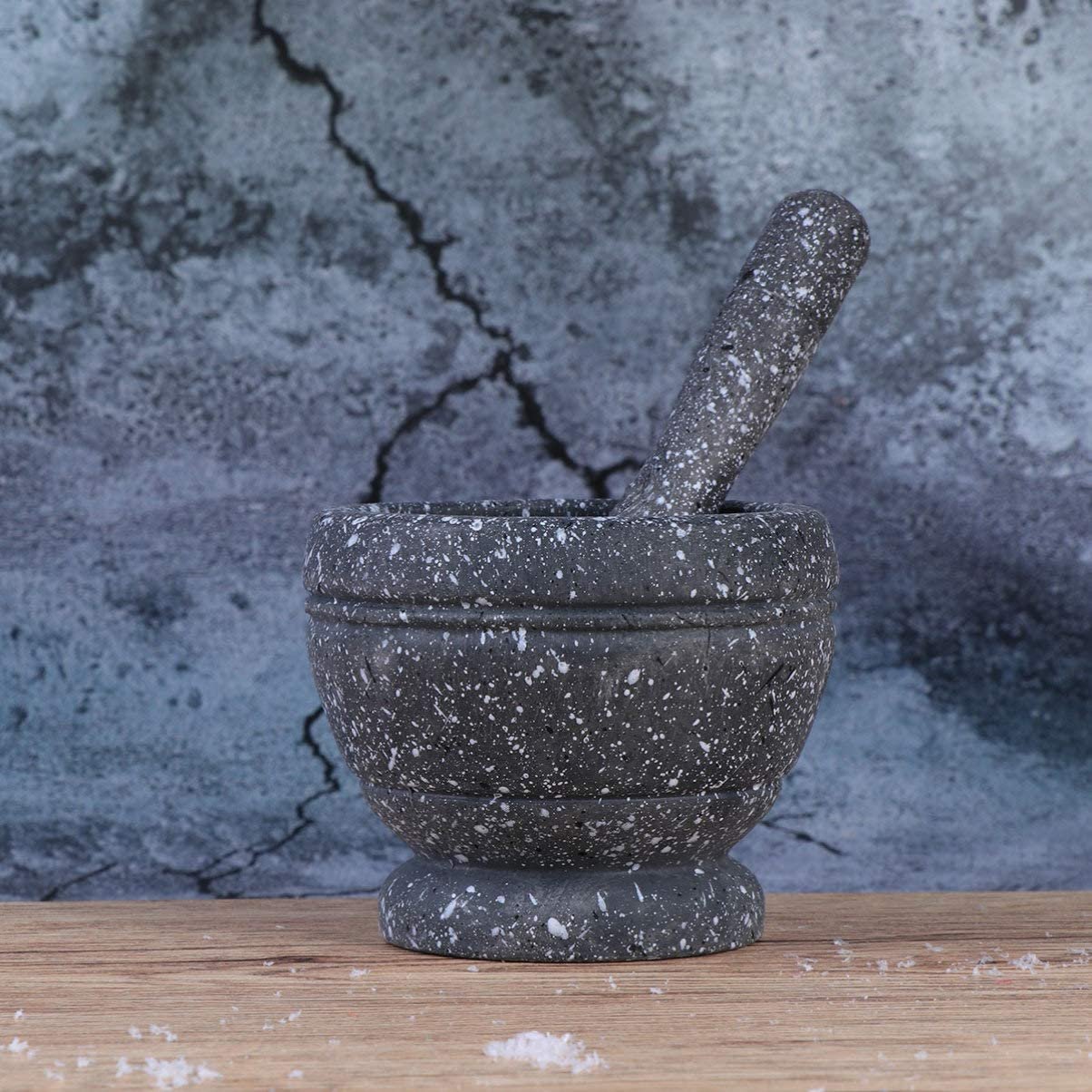 Authentic stone mortar and spice pestle blends perfectly in your kitchen and creates a feeling of timeless connection with the earth and the elements. 100% natural unpolished granite resists scratches and stains and retains its original condition for years.