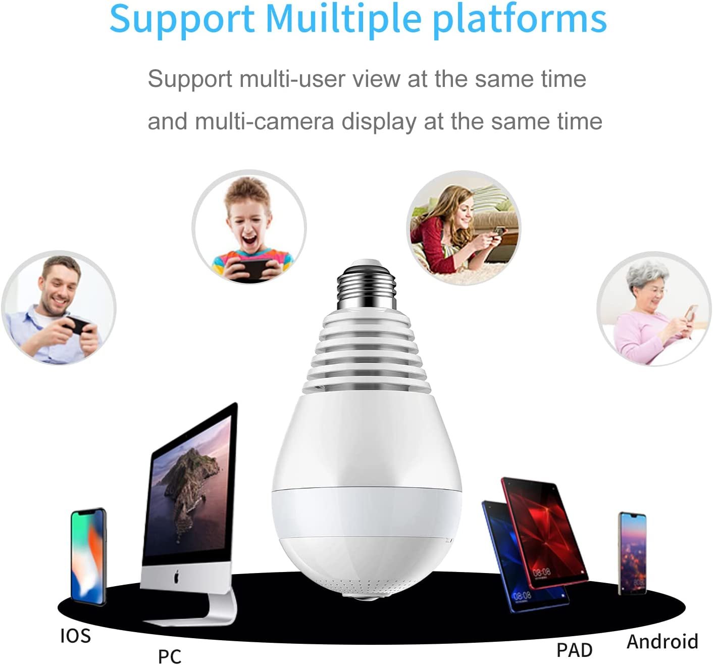 This WiFi bulb camera is 1920×1080 high resolution, 2MP full size clear picture bring every detail to you. With newest video compression technology, you can view fluent live video real time on your cellphone. And Micro SD card can save 4 times videos under H.265 than H.264 standard.