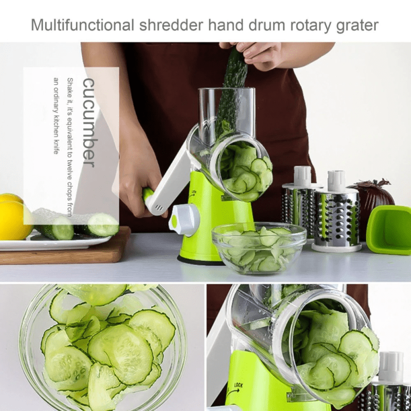 - MULTIPLE FUNCTIONS IN ONE TOOL- This round drum slicer has 3 easily interchangeable drum blades for different cooking choice, including fine, coarse grating/shredding, and slicing
